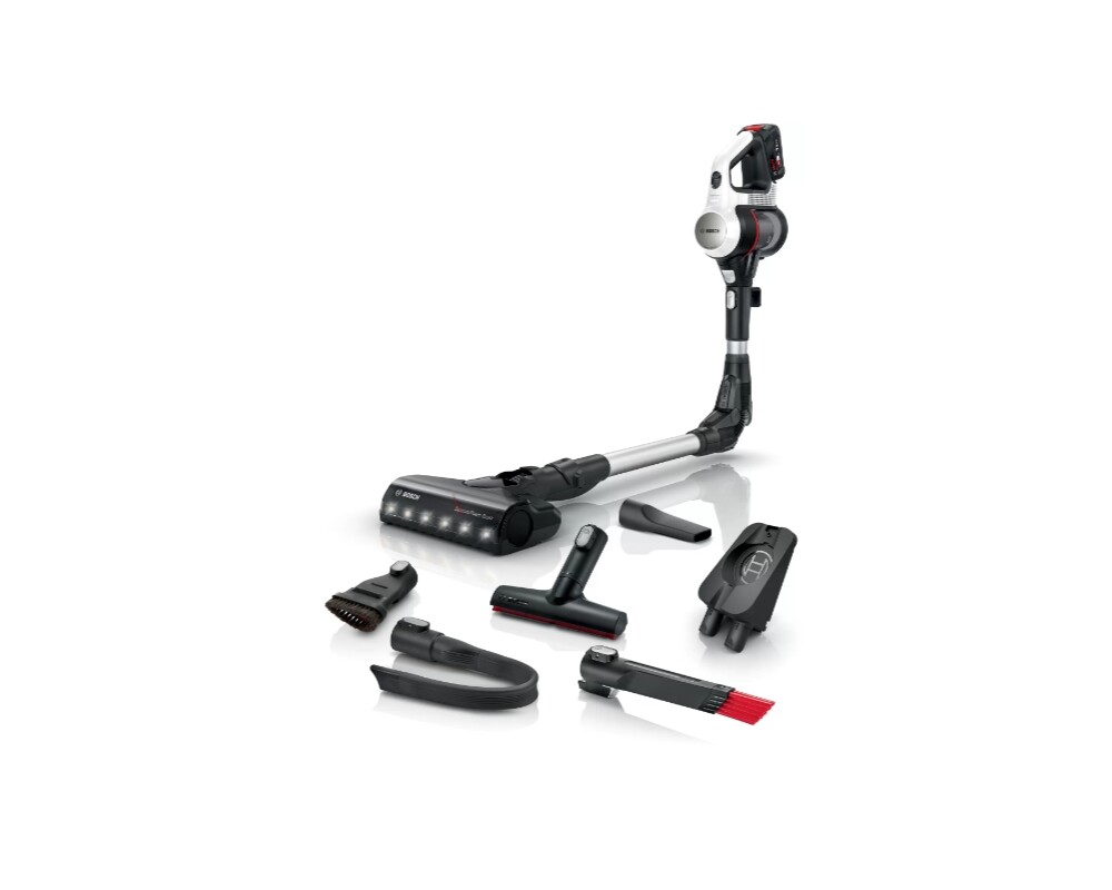 Мощна като прахосмукачка с кабел и същевременно гъвкава. Вече е възможно: безжичната прахосмукачка Unlimited 7 предлага същата производителност като кабелно устройство. Благодарение на надеждна и дълготрайна батерия на Bosch, мощен двигател с 66 000 об/мин и моторизирана четка със светодиоди, също толкова мощна, колкото и прахосмукачката с кабел и осигурява цялостно и гъвкаво почистване. Насладете се на предимствата на акумулаторна прахосмукачка, съчетана с мощността на прахосмукачка с кабел. Без усилие: лесно почистване благодарение на удобните функции като Flex Tube и Quick Stand. Повече време на работа: Сменяема 3,0 Ah батерия (Power for all Alliance) с до 33% повече време на работа. AllFloor DynamicPower Четка с интегрирани LED светлини: за повече от 99,9 % улавяне на прах. TurboSpin мотор: По-бърз, по-лек и по-ефективен за впечатляваща ефективност на почистване.