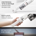 - Накрайници - мека четка, четка със силикон и влакна, гъвкава тръба, тънък накрайник, мултифункционална четка, накрайник за почистване на матраци