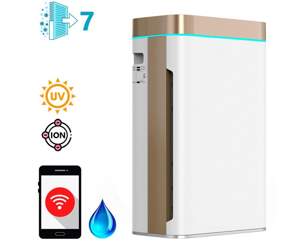 7-степенна пречистваща система (1 мрежест филтър + 2 двойни филтъра + йонизатор + стерилизираща лампа):