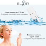 Спреят с водородна вода Elixir е високотехнологично решение за поддържане на красива кожа без странични ефекти, което се отличава с качествено изпълнение, стилен дизайн и минималистичен размер, който му позволява лесно да се побере във всяка дамска чанта.