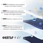 - PP мембранен филтър - филтрира замърсители с големи частици като утайка, ръжда, хлор и други.