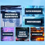 Моментно охлаждане на водата до температура 4-8 градуса (с вграден компресор, 1.2 L вътрешен контейнер)