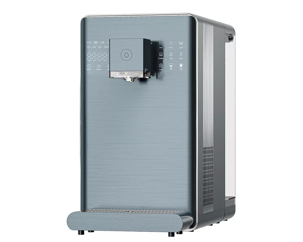 Освен че предлага безкомпромисно качество, уредът за пречистване е лесен за използване, а елегантният й дизайн Ви позволяват да го позиционирате на всяко едно място. Диспенсърът за филтриране на вода пречиства чрез многостепенна филтрация, подсигурена от мембранен филтър за обратна осмоза, PAC композитен филтър, филтър за допълнителна минерализация и UVC стерилизация на водата!