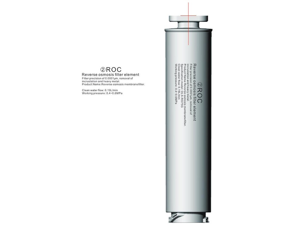 75G Мембранен филтър за обратна осмоза - Обратната осмоза е най-качествената към момента технология за пречистване на водата, която се използва от производителите на напитки, храни и лекарства в цял свят. При този процес водата се пропуска под налягане през полупропусклива мембрана, която пропуска само молекулите на водата и отстранява всякакви микроорганизми, бактерии и вируси, хормони, тежки метали, антибиотици, пестициди и други опасни вещества. Осмотичната мембрана има микроскопични пори и не пропуска солите на твърдостта (калций и магнезий), заради които се появява котления камък, поради което обратната осмоза е най-ефикасният метод за пречистване на твърда вода. Чрез обратната осмоза се осигурява 5-степанна дълбока филтрация, която отстранява замърсители по-малки от 0,00001 микрометър, което прави методът до 5000 пъти по-ефективен от обикновените филтри за вода.