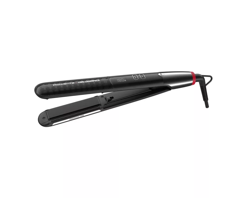 Преса за коса Rowenta Karl Lagerfeld Pro Stylist, регулируема температура 140 ° C до 210 ° C, ексклузивно покритие Keratin & Glow, система Liss & Curl. Пресата за коса Rowenta Karl Lagerfeld Pro Stylist е професионален инструмент, който ще ви помогне лесно да изправите косата си, независимо от типа и. Йонният генератор и изключителното покритие Keratin & Glow придават на косата блясъка и формата, които желаете. Температурата може да се регулира от 140°C до 210°C, с щадяща настройка от 170°C за защита на косата ви. Плаващите плочи автоматично се адаптират към дебелината на кичура коса, а LCD екранът е лесен за разчитане. Пресата за коса Rowenta Karl Lagerfeld Pro Stylist ще ви помогне да оформите косата си точно като в салон. С едно движение получавате меки и блестящи кичури благодарение на ексклузивното покритие Keratin & Glow, което предлага перфектната комбинация от прокератин и турмалин, за да получите мека коса с до 41% повече блясък сравнение с естествена коса.