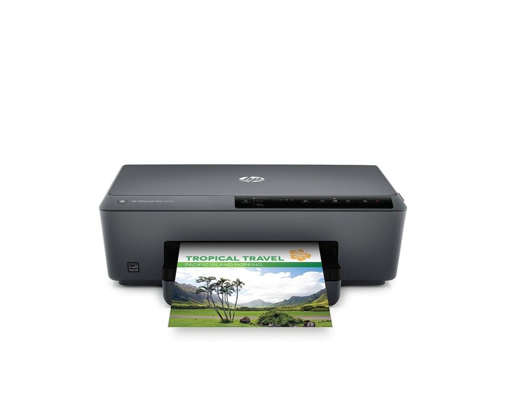 HP Officejet Pro 6230 е мастилоструйно принтер, който ви помага да печатате професионално изглеждащи цветни документи и впечатляващи маркетинг материали за до 50% по-малка цена на страница от лазерния печат. Този принтер е създаден, за да повиши продуктивността на вашия бизнес и да ви помогне да работите по-ефективно и лесно от всякога. Автоматичното двустранно печатане ви помага да спестите до 50% хартия, когато печатате документи и цветни брошури без рамки. HP Officejet Pro 6230 е перфектният избор за печат на брошури, флаери и други офис документи с лекота и удобство. Ако желаете може да печатате безжично чрез HP ePrint и Apple AirPrint, независимо къде се намирате. Този принтер ви помага да създавате графики с ярки и живи цветове, както и текстове с наситени черни тонове. Този принтер печата черно-бели документи с бързина до 18 стр./мин., а първата страница излиза след 14 секунди. При печат на цветни документи принтерът ви осигурява скорост до 10 стр./мин. като първата страница излиза след 17 секунди.
