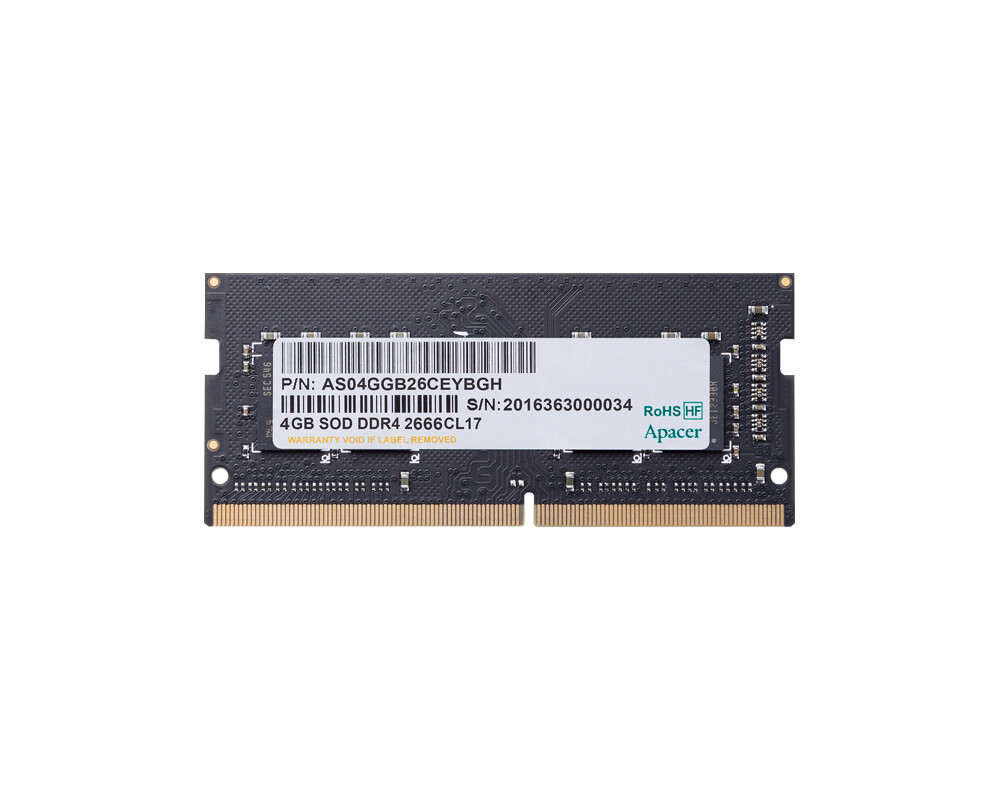 - Apacer 4GB Notebook Memory - DDR4 SODIMM 2666MHz (ID: 146285)
