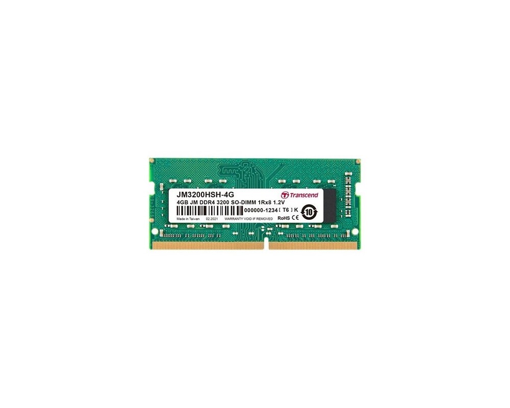 - Transcend 4GB JM DDR4 3200 SO-DIMM 1Rx8 512Mx8 CL22 1.2V (ID: 310080)