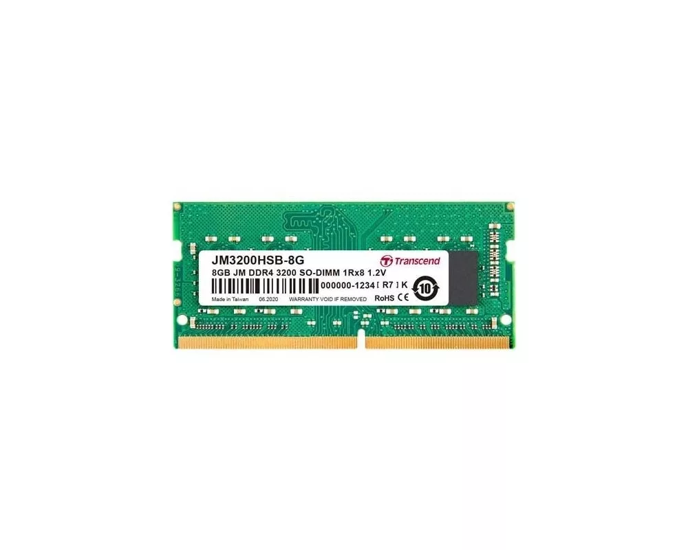 - Transcend 8GB JM DDR4 3200Mhz SO-DIMM 1Rx8 1Gx8 CL22 1.2V (ID: 176309)