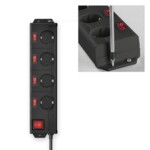 Разклонител HAMA Разклонител с ключ, 4 гнезда на 90°, стенен монтаж, 1.4м, черен HAMA-223122