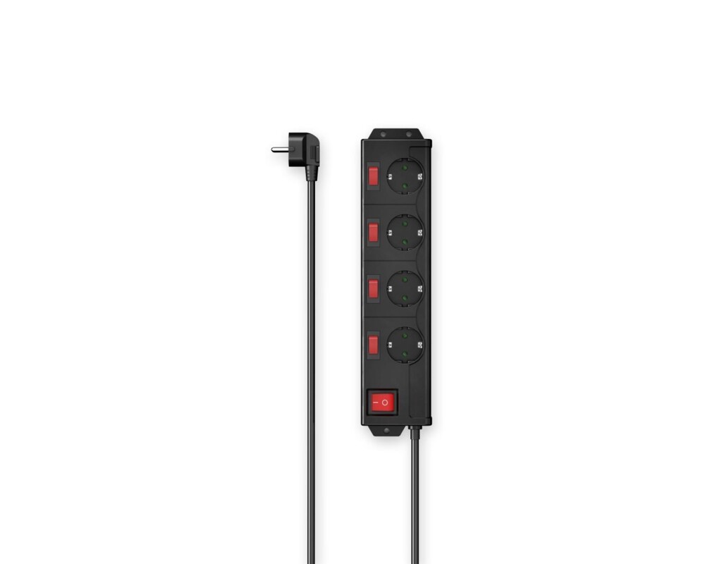 - HAMA Разклонител с ключ, 4 гнезда на 90°, стенен монтаж, 1.4м, черен (ID: 846060)