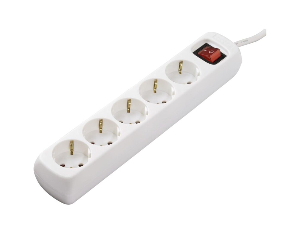 Разклонител 5гнезда, 1.4м,бял с бутон вкл/изкл