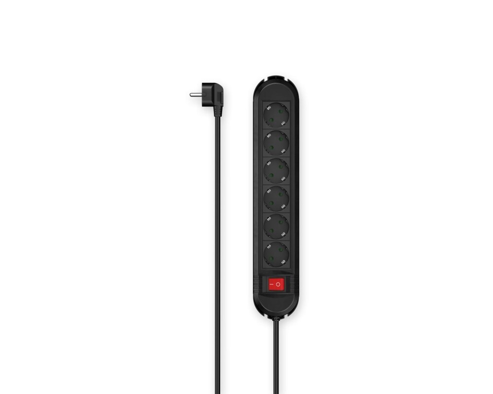 - HAMA Разклонител 6 гнезда, 3м, черен, с бутон вкл/изкл, стенен монтаж (ID: 782717)