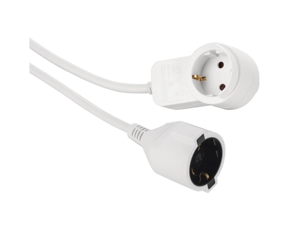 - Удължителен кабел HAMA Powerplug, Шуко мъжко, Шуко женско, Допълнителен контакт, 3.0 m, Бял (ID: 194407)