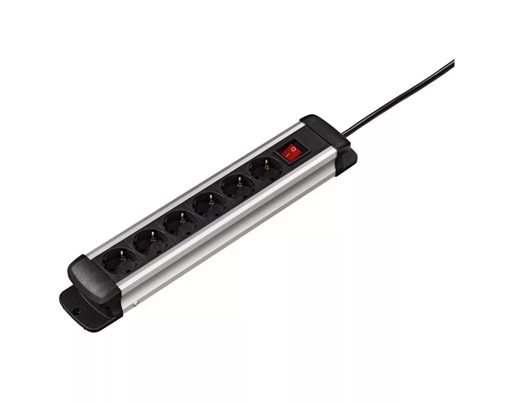 Разклонител HAMA Pro-S 60S, Алуминиев със защита, 6 гнeзда, 1.5м кабел HAMA-47856