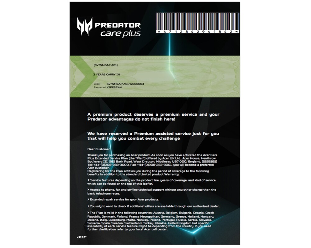 - Acer 3Y Carry In Warranty Extension for Notebook Predator (ID: 212860)