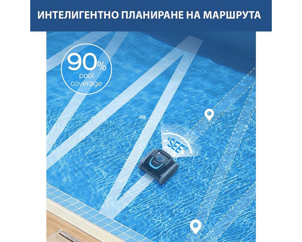- Автоматично планиране на най-ефективния маршрут за почистване на басейна