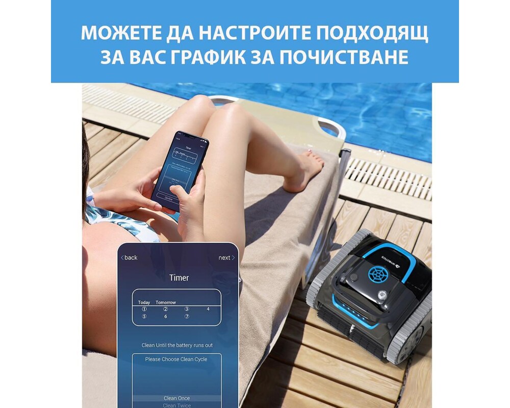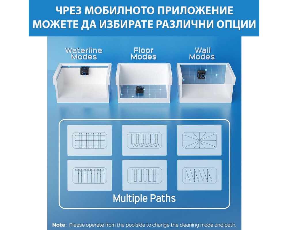 - Мобилно приложение (* можете да променяте режима на почистване, когато роботът не е във водата)