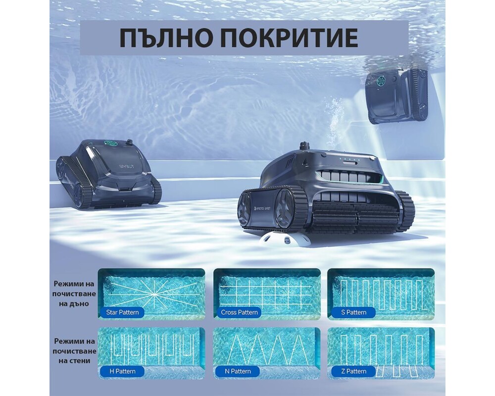 - Автоматично планиране на най-ефективния маршрут за почистване на басейна