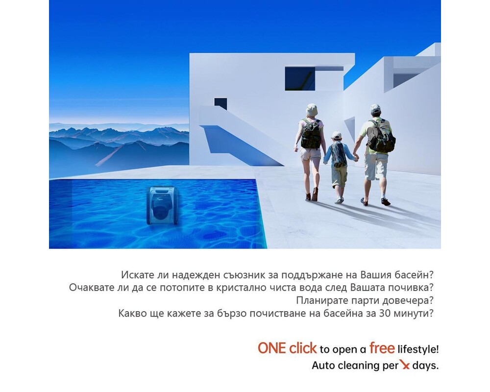 - Безкабелен интелигентен продукт, който ви осигурява по-висока степен на удобство в сравнение с роботите за басейни с кабел
