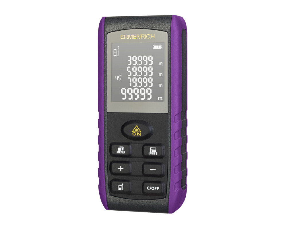 <p>Лазерният измерител Ermenrich Reel PRO GE60 Ви дава възможност за извършване на точни измервания на разстояния в диапазона от 0,05 до 60 метра, така също за измерване на ъглите, площта и обема на помещения и обекти. Важно предимство на уреда е функцията с използване на Питагоровата теорема: ако измервателният уред не може да се постави на желаното място или ако на пътя на лазера има препятствие, достатъчно е да направите две допълнителни измервания, на базата на които измервателният уред ще изчисли разстоянието.</p>