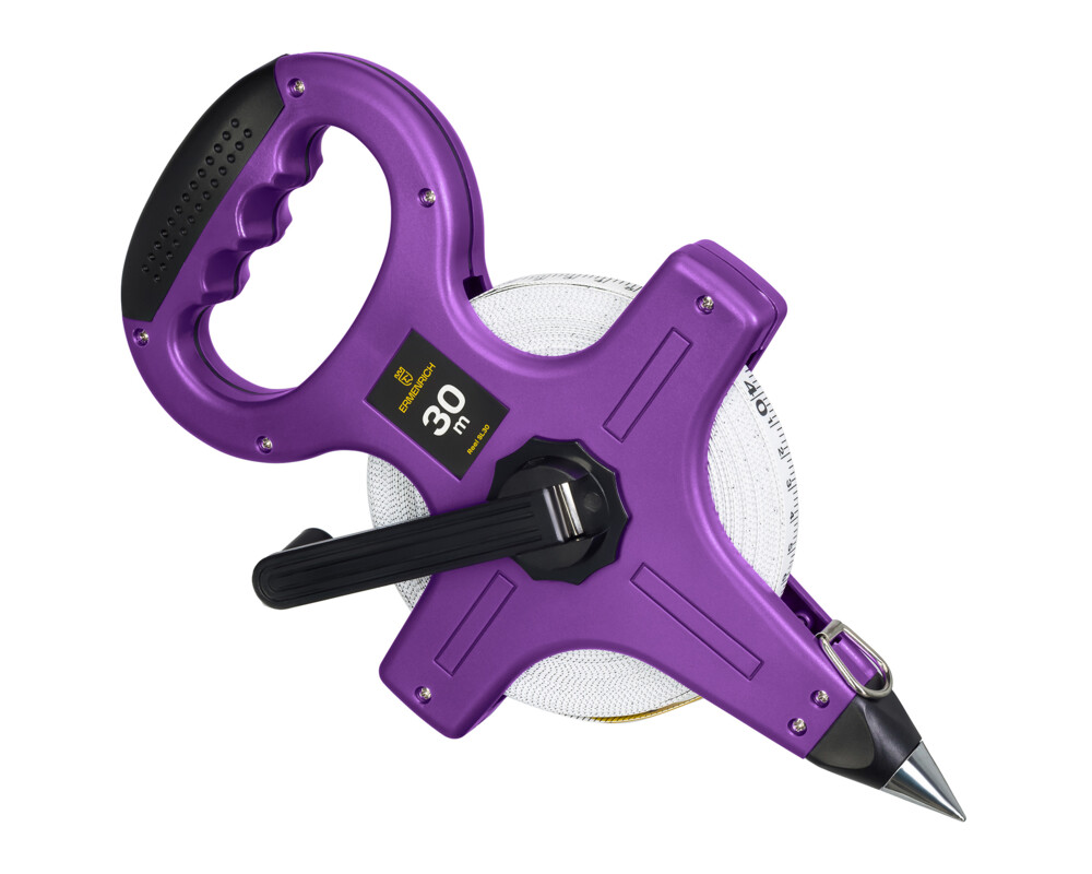 Професионална геодезическа измервателна лента (ролетка). Дължина на лентата: 30 метра. Ширина на лентата: 13 mm