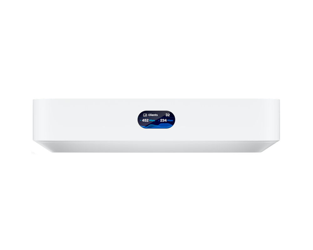 Cloud Gateway Ultra има компактен дизайн, който се вписва безпроблемно във всяка среда. Интегрираният 0.96-инчов LCM дисплей за статус предоставя информация в реално време за мрежовата активност. Cloud Gateway Ultra се захранва чрез USB-C връзка, предлагайки гъвкаво и надеждно захранващо решение (включен адаптер). Със своите стабилни функции, удобен за потребителя интерфейс и компактен дизайн, Ubiquiti Cloud Gateway Ultra е идеалното решение за тези, които търсят надежден и сигурен мулти-WAN гейтуей за своята домашна или малка бизнес мрежа.