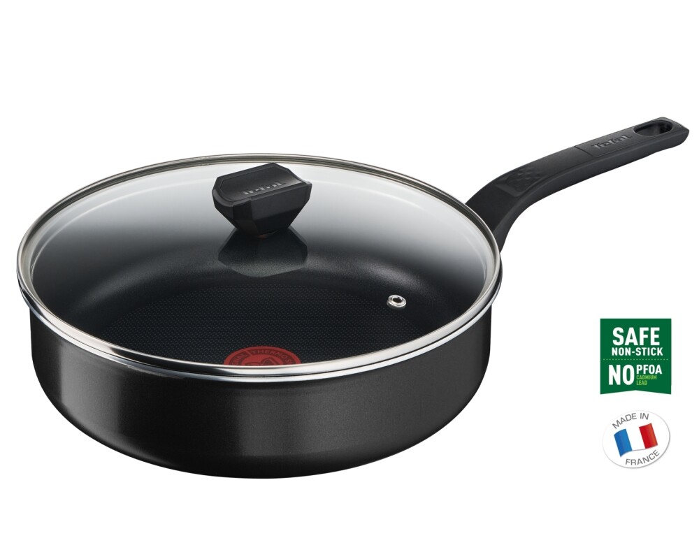Новият дълбок тиган Tefal Simply Clean ви помага да постигнете страхотни резултати без затруднения. Открийте напълно покритите с незалепващо покритие съдове за готвене - отвън и отвътре за безпроблемно и лесно почистване. Висококачественото покритие Titanium е изключително здраво, а дъното Diffusion осигурява оптимално разпределение на топлината за равномерно сготвена храна, а подобрената форма на дръжката осигурява повече комфорт по време на готвене. Този дълбок тиган с незалепващо покритие и стъклен капак е подходящ за сотиране, задушаване и приготвяне на сосове без компромис. Без значение дали говорим за ястие, което създавате от нулата или за разтапящо се в устата уикенд изкушение, което да зарадва цялото семейство, за всяко готвене е нужно време. Tefal прави процеса на почистване по-бърз и лесен.