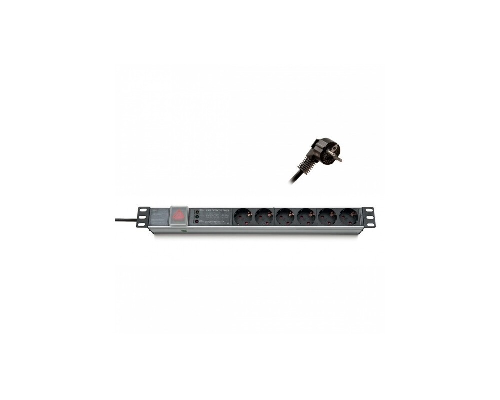 - Formrack 19" 6 way power outlet strip (Schuko 230V) with circuit breaker and on/off switch Aluminium 1U (ID: 761435)