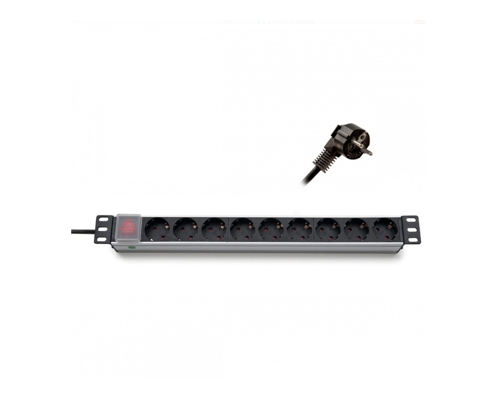 - Formrack 19" 9 way power outlet strip (Schuko 230V) with on/off switch Aluminium 1U (ID: 761441)