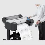Подобрете изживяването при печат с подобрена производителност, интуитивна функционалност и професионално качество на изображението от устойчиво устройство. С вграден твърд диск, този 24" принтер е предназначен за корпоративни и големи офиси в сферата на архитектурата, инженерството и строителството (AEC), търговията на дребно и образованието. Подобрете изживяването при широкоформатен печат - Създавайте безпроблемно разпечатки с професионално качество с подобрена производителност и устойчиво и интуитивно устройство. Създавайте привличащи вниманието маркетингови материали и точни CAD разпечатки в резултат на яркия червен цвят и резките линии. Професионално качество на печат - Използвайте подобрения за стабилни изображения, за да създадете резки, ясни линии и новото мастило магента за ярък червен цвят. В резултат на това ще създадете ярки и точни CAD чертежи, плакати и образователни материали. По-добра продуктивност - Създавайте A1 CAD разпечатки само за 20 секунди или A1 плакати за 22 секунди. Спестете време от изрязване на излишните полета с разпечатки без полета с всякакви формати и лесно посрещнете по-голямо търсене на печат с по-големи патрони за мастило, кратко време за обработка и бързо връщане от режим на покой. Интуитивна функционалност - Следвайте лесни инструкции и получавайте важна информация, като тип носител, оставащо количество печатен носител и количество мастило на 4,3" панел със сензорен екран. Спестете време, като поставите ролна хартия с бърз достъп чрез плосък капак. Подобрена устойчивост - Екологично ориентирано устройство с оценка EPEAT Gold1 за ниска консумация на енергия с намаляване на мощността по време на режим на готовност и опаковка без полистиренова пяна. Печатът с по-малко шум го прави идеален за тихи офиси.
