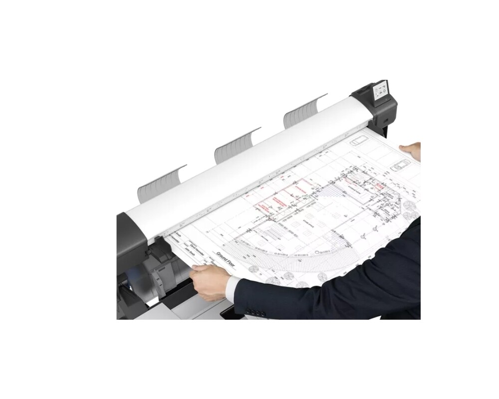 Създавайте разпечатки с професионално качество с резки, ясни линии и ярък червен цвят – идеални за привличащи вниманието CAD чертежи и маркетингови материали. Интегрираната функционалност за сканиране със специален софтуер повишава продуктивността, печата и сканирането за по-безпроблемен работен процес. Интегрирана функционалност - Печатайте и сканирайте безпроблемно с лесно за използване многозадачно устройство. 3” сензорен панел на скенера и специален софтуер позволяват паралелна обработка с печат и сканиране едновременно. Професионално качество на печат - Използвайте стабилни подобрения на изображението, за да създадете резки, ясни линии и новото мастило магента за ярък червен цвят. В резултат на това ще създадете ярки и точни CAD чертежи, плакати и образователни материали. По-добра продуктивност - Създавайте A1 CAD разпечатки само за 17 секунди или A1 плaкати за 22 секунди. Спестете време от изрязване на излишните полета с разпечатки без полета с всякакви формати и лесно посрещнете по-голямо търсене на печат с по-големи патрони за мастило, кратко време за обработка и бързо връщане от режим на покой. Интуитивна функционалност - Следвайте лесни инструкции и получавайте важна информация, като тип носител, оставащо количество печатен носител и количество мастило на 4,3" панел със сензорен екран. Спестете време, като поставите ролка хартия с бърз достъп през плосък капак.