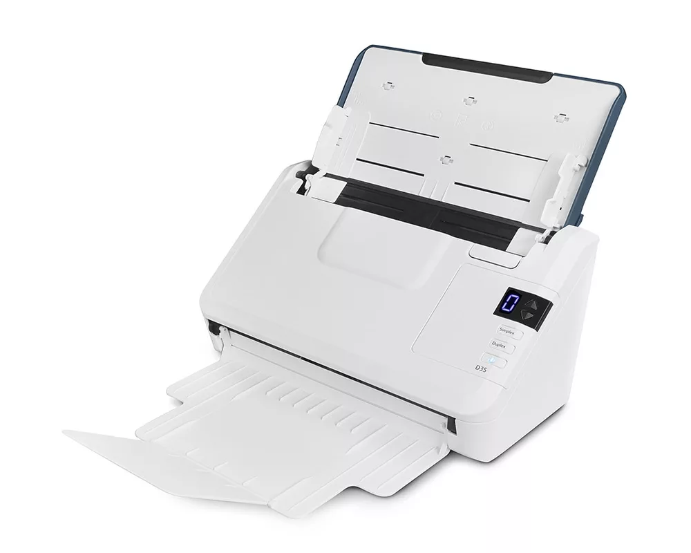 Xerox D35 е перфектното съчетание от добра цена и бързи скорости на сканиране. Той ви гарантира перфектна функционалност, безпогрешна продуктивност и отлична работа с няколко софтуерни приложения, които ви помагат да изберете най-добрият инструмент за изпълнението на задачите си. Той може да сканира до 45 страни на минута (90 изображения на минута в двустранен режим на работа) и ви гарантира, че големите и обемни задания ще бъдат изпълнени бързо и надеждно. Освен това този скенер работи чрез стабилна USB връзка, но може да бъде споделян от потребители на локални или облачни мрежи. Xerox D35 ви осигурява впечатляващ диапазон от настройки, които ви позволява да сканирате супер прецизно и да настройвате начина на сканиране, благодарение на лесния за употреба интерфейс и удобните съвети при работа, които скенерът ви дава. Този скенер разполага с функция за разделяне на сканираните документи на различни файлове (когато сканирате много документи едновременно), функция, която ви позволява да създавате индекси и функция за извличане данни.