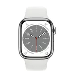 - Apple Watch Series 8 GPS + Cellular 41mm Silver Stainless Steel Case with White Sport Band - Regular (ID: 562089)