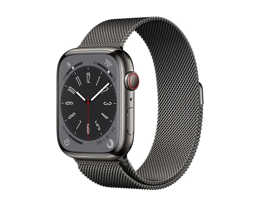 - Apple Watch Series 8 GPS + Cellular 45mm Graphite Stainless Steel Case with Graphite Milanese Loop (ID: 562077)