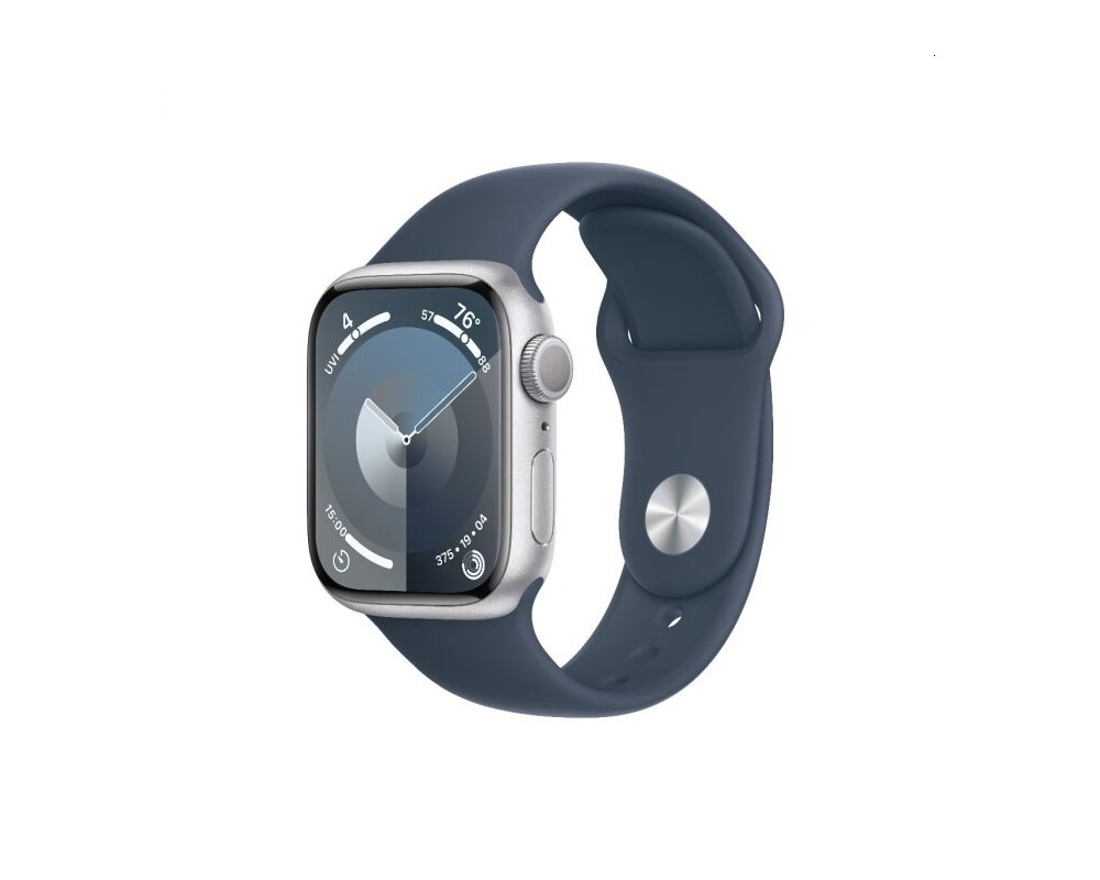 - Apple Watch Series 9 GPS 41mm Silver Aluminium Case with Storm Blue Sport Band - M/L (ID: 692407)