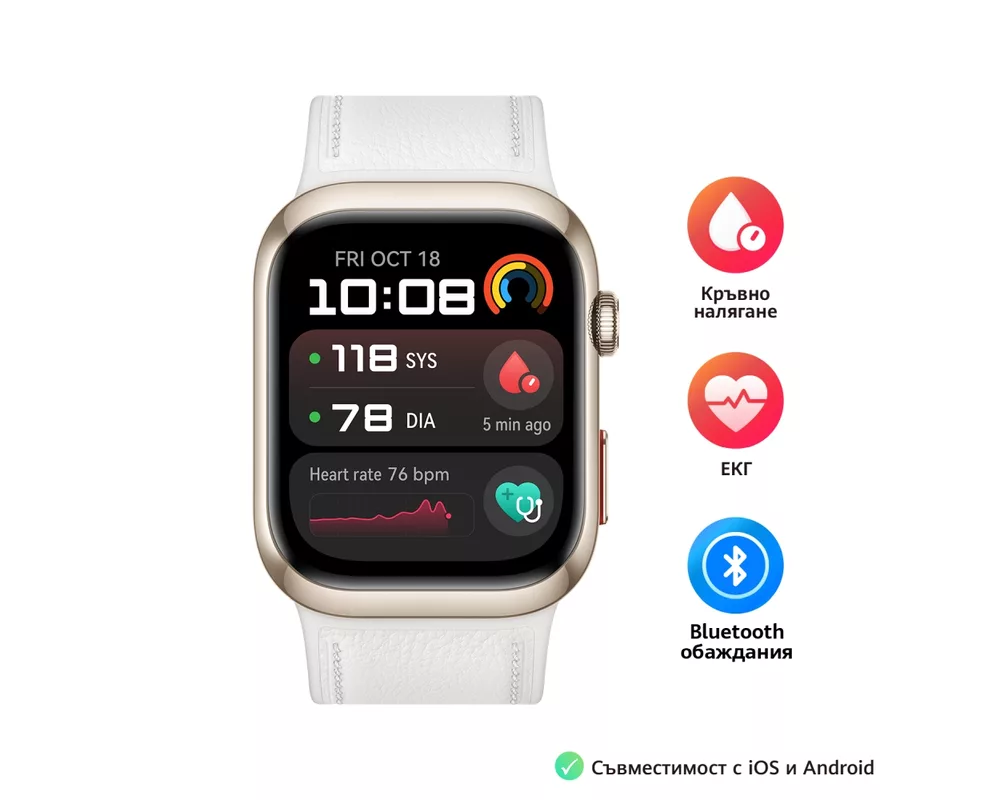 | Функции | Microphone, Speaker, Micro pump, Rotating crown and Function button; Blood Pressure Measurement & ECG with built-in pump & inflatable strap; ECG certified |