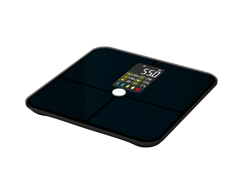Работа чрез удобно за потребителя приложение AENO Перфектен асистент за контрол на теглото: диаграма за промяна на теглото Автоматичен анализ на метаболизма (ИТМ) Висока товароносимост - до 180 кг Високопрецизни сензори: стъпка от 100 g Удобен за много потребители: 10 потребителски профила + 1 гост Лесно почистване: закалено ITO стъкло Преобразуване на 3 единици: kg, lb, st Широки възможности в приложението Минимално тегло 5 кг Бърза връзка Автоматично включване Автоматично изключване (след 15 секунди) Скорост на базалния метаболизъм с прецизни анализи на необходими kCal Стъпка на измерване - 50g Усъвършенстван анализатор на телесния състав: 16 показателя Автоматизирана оценка на здравето на сърцето Голям информативен цветен екран Параметри, няма нужда да включвате приложение, за да ги виждате 4 активни електрода за подробни анализи на вашето тяло Повърхност от закалено стъкло - лесна за почистване 16 различни измервания: сърдечен ритъм, тегло, ИТМ, процент на телесни мазнини, мускулна маса, телесни мазнини Индекс, Мастна маса, Ниво на затлъстяване, Идеално тегло, Контрол на теглото, Индекс на висцералната мазнина, Тегло без мазнини, Телесна вода, Костна маса, Степен на протеин, BMR, Метаболитна възраст LED дисплей |