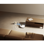 Интелигентната прибираща се странична четка и подложката за моп се издърпват автоматично, почиствайки прах по стените и в ъглите с прецизност до милиметър. В комбинация с отделния резервоар за вода на роботизираната прахосмукачка и прецизния контрол на дебита на водата, подовете остават искрящо чисти.