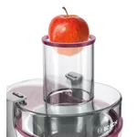 Мощната сокоизстисквачка работи с цели плодове без необходимост от предварително рязане: бързо, лесно и чисто. Голям отвор за пълнене за плодове (цели ябълки) и зеленчуци – без нужда от предварително рязане. Практичен чучур с DripStop предотвратява капане и осигурява чиста работна площ. Практично използване с две скорости за твърди и меки плодове. SafetyStop осигурява ефикасна защита срещу нараняване: Когато отваряте капака по време на работа, двигателят незабавно и автоматично спира за секунди. Уредът може да бъде включен само ако всички части са правилно сглобени.