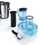 Мощната сокоизстисквачка работи с цели плодове без необходимост от предварително рязане: бързо, лесно и чисто. Голям отвор за пълнене за плодове (цели ябълки) и зеленчуци – без нужда от предварително рязане. Микроцедка от неръждаема стомана за оптимално извличане на сок. Практичен чучур с DripStop предотвратява капане и осигурява чиста работна площ. Изключителна безопасност: Моторът се включва само ако уредът е сглобен правилно и капакът е затворен. Практично използване с две скорости за твърди и меки плодове.