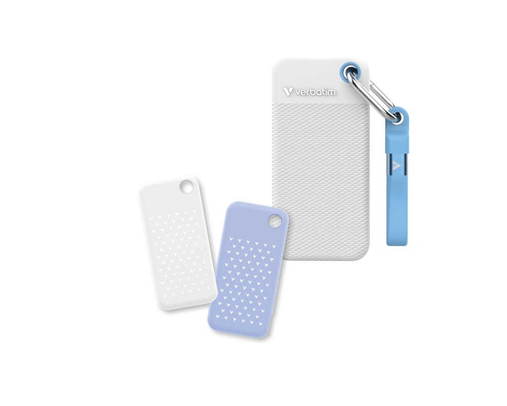 - Verbatim Pocket SSD USB 3.2 Gen 2 2TB White/Light Blue incl. two rubber sleeves (ID: 850113)