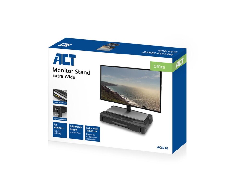 Стойка ACT AC8210, За бюро, с чекмедже,до 10 кг, Черна EWENT-ACT-MON-AC8210