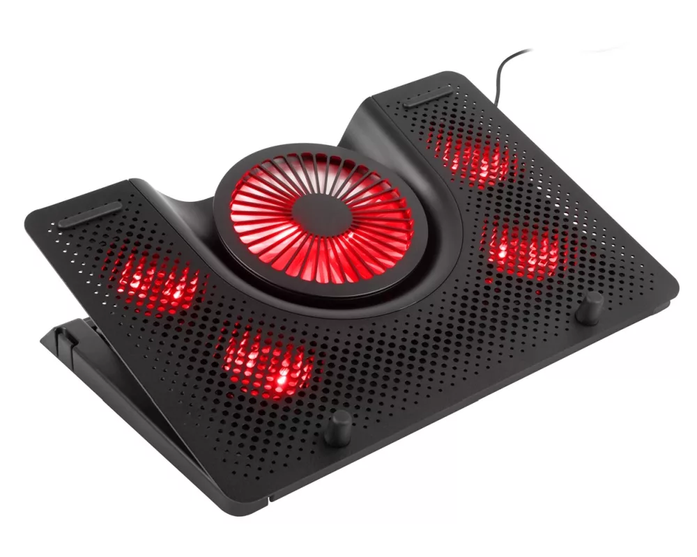 Genesis Oxid 550 е охладителна подложка, която ви осигурява правилен ъгъл на гледане и 5 различни нива на височина, които ви дават максимално удобство по време на дългите гейминг маратони. Тя ви гарантира абсолютен контрол над вашата игра, благодарение на гумираната си стойка, която не позволя неприятно пързаляне и мърдане на вашия лаптоп по време на игра. Тази подложка разполага с 5 по-малки вентилатора, които разпределят топлината под лаптопа и един голям вентилатор, който осигурява охлаждаш въздушен поток. Всеки един от вентилаторите има червена подсветка, която внася допълнителен стил във вашето гейминг изживяване.
