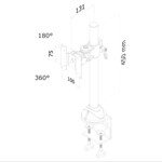 FPMA- D965 е накланяща се и въртяща се стойка за бюро за два плоски екрана с големина до 30 инча (76 см). Тази стойка е чудесен избор за спестяване на място на бюра, тъй като работи с помощта на скоба за бюро. Гъвкавата технология на накланяне (180°) и на завъртане (360°) позволява на стойката да се променя към всеки ъгъл на гледане, за да се възползвате напълно от възможностите на плоския екран. Ако желаете имате възможността да регулирате височината на стойката ръчно от 0 до 45 сантиметра. Дълбочината на стойката е 9 сантиметра. FPMA- D965 има две точки на въртене и е подходяща за екрани до 30 инча. Максималният капацитет за тегло на този продукт е 8 кг за всеки екран. Стойката за бюро е подходяща за екрани, които отговарят на VESA шаблон с отвори 75x75 или 100x100 мм. Различните модели на дупки могат да бъдат покрити с помощта на адаптерни плочи Neomounts by Newstar VESA. Употребата на тази ергономична стойка може да ви помогне да избегнете оплакванията от болки и неудобство във врата и гърба ви. Тази стойка е идеална за употреба в офиси и на гишета или в приемни. Всички монтажни материали са включени в продукта.