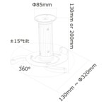Newstar BEAMER-C80 е таванна стойка, която ви позволява да променяте наклона и завъртането на проектора си. Тя е подходяща за проектори с тегло до 15 килограма, а променящата й се позиция я прави идеален избор, когато искате да се насладите на оптимално зрително изживяване. Тази готова за монтаж стойка ви предлага лесно инсталиране без да е необходимо да използвате допълнителни аксесоари. Тази стойка има наклон (30°) и завъртане (360°), които ви позволяват да се възползвате от всички функционалности на проектора си. Newstar BEAMER-C80 има регулируема височина до 8 сантиметра, а иновативният механизъм за управление на кабелите ги прокарва и скрива от тавана към проектора. По този начин може да бъдете сигурни, че мястото на монтаж ще бъде спретнато и чисто, без висящи и неподредени кабели. Тази стойка има две точки на въртене и е подходяща за повечето видове проектори. Тази стойка е идеален избор за употреба в офиси, училища, болници или у дома.
