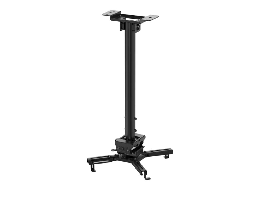 Newstar CL25-540BL1 е универсална таванна стойка, която издържа на изключително високо тегло (до 35 кг) и ви предоставя различни опции за монтаж. Това я прави широко приложима, независимо от типа монтаж и типа проектор, с който разполагате. Тази стойка има четири разтегателни рамена и универсална технология за накланяне (+20°, -20°) и завъртане (360°), които ви осигуряват оптимално разположение на проекцията върху всяко платно, екран или стена. Освен това поддръжката има регулируема дължина от 60,5 до 90,5 см. Neomounts от Newstar CL25-540BL1 е оборудван със система за лесно освобождаване, която значително улеснява монтажа; (Де)монтирането на проектора към стойката може да се извърши за миг и само от един човек. В допълнение кръглият стълб позволява лесен монтаж към окачен таван. Освен това стълбът на стойката може да бъде наклонен от страната на тавана, така че монтажът върху наклонен таван да е лесен и ефективен. Самата фиксация на стойката е здрава и стабилна, което ви гарантира че няма да има досадни вибрации по време на употреба. Системата за управление на кабелите на стойката ви гарантира, че кабелите са спретнато скрити, тъй като те са прекарани през стълба на таванната стойка и не се виждат.