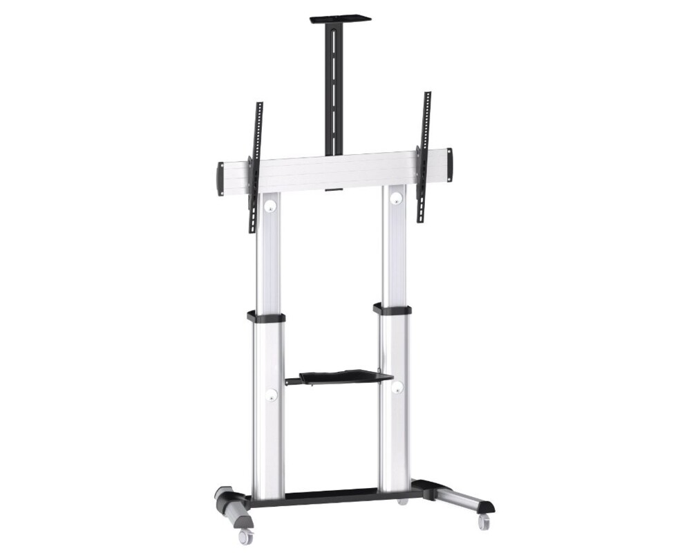 Тази стойка за телевизори от Sunne е подходяща за телевизори с размери от 60 инча до 100 инча (152.4 до 254.0 см). Тя е направена от стомана и от висококачествен алуминий и ви гарантира, че ще я използвате в продължение на години. Стойката разполага със система за подреждане на кабелите, която ви помага да запазите пространството около телевизора си подредено и спретнато. Тази стойка ви позволява да накланяте телевизора на -10°/+5° като така имате възможността да се насладите на любимите си филми, сериали и спортни състезания по най-удобния за вас начин. Стойката издържа на максимално натоварване до 80 кг и е съвместима с максимален VESA размер от 1000х400 мм. Тази стойка ви гарантира, че телевизорът ви е монтиран сигурно, стабилно и безопасно.