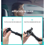 | Други характеристики | Може да се монтира на стъкло или на таблото на колата; Регулируема височина; Регулируема дължина на рамото; Материал: Алуминий + ABS |