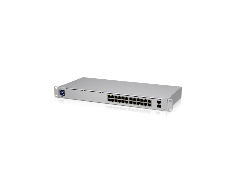 UniFi Switch 24 е напълно управляван комутатор Layer 2 с 24 Gigabit Ethernet портове и 2 Gigabit SFP портове за оптична свързаност.